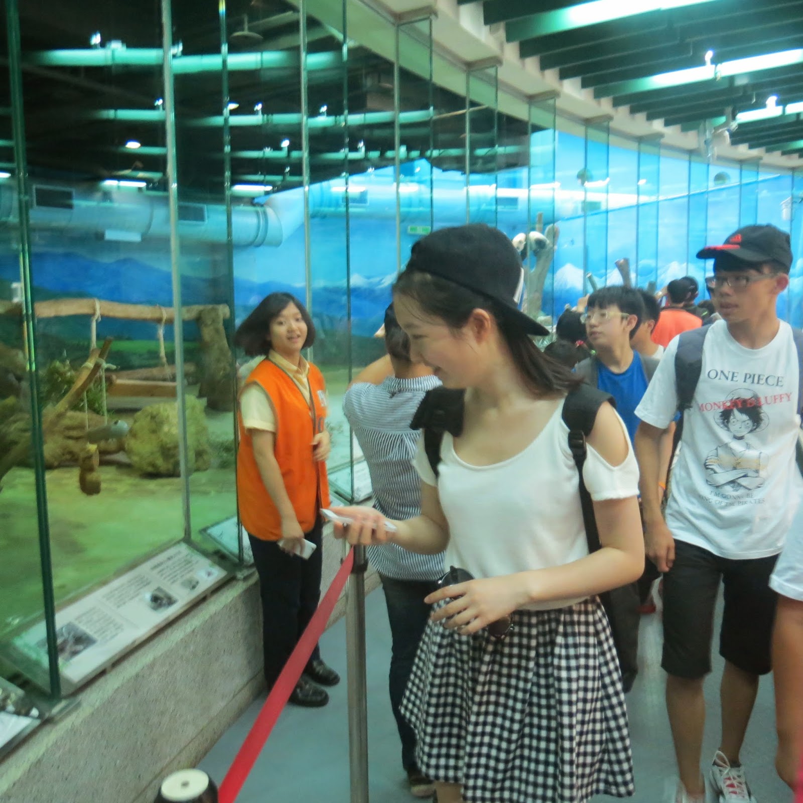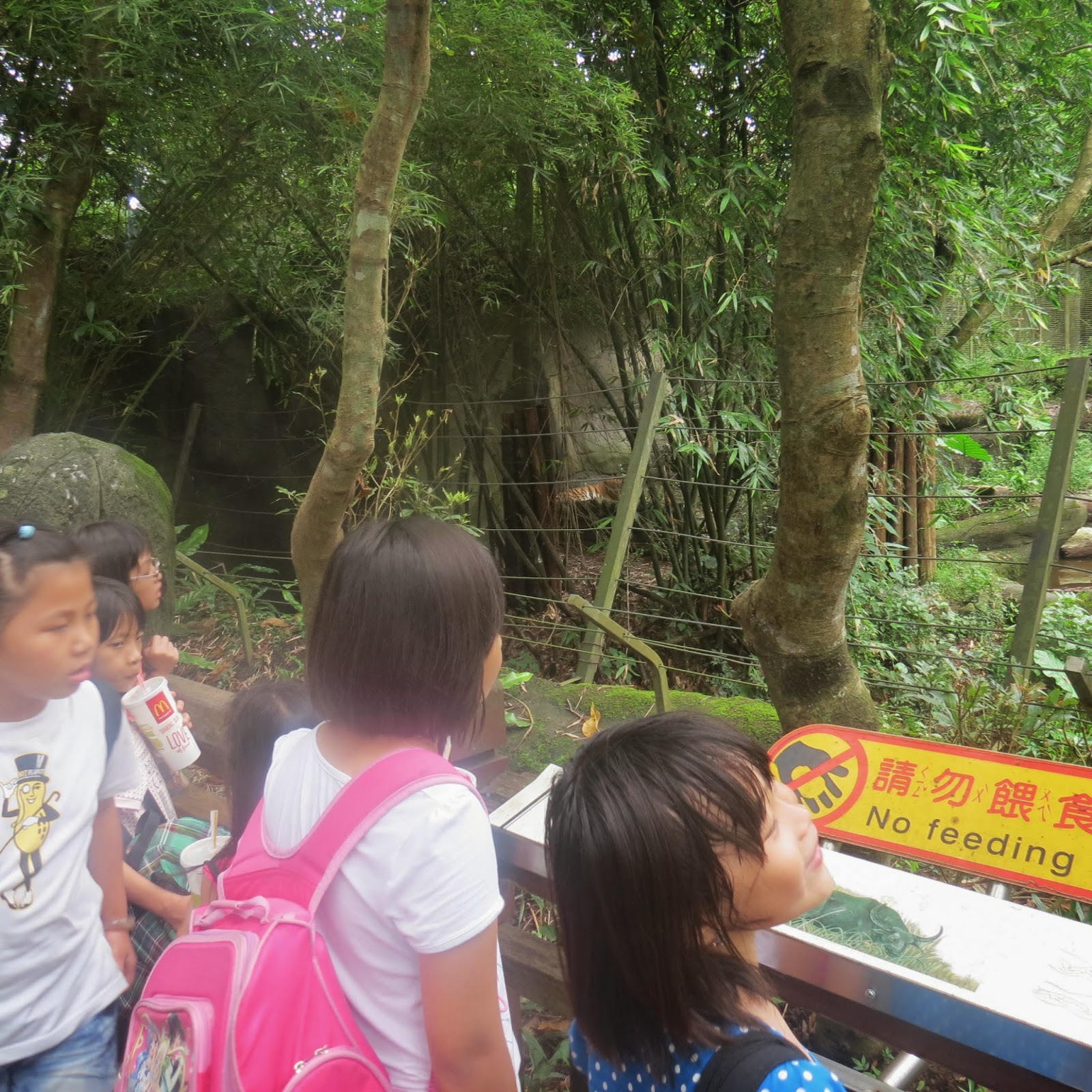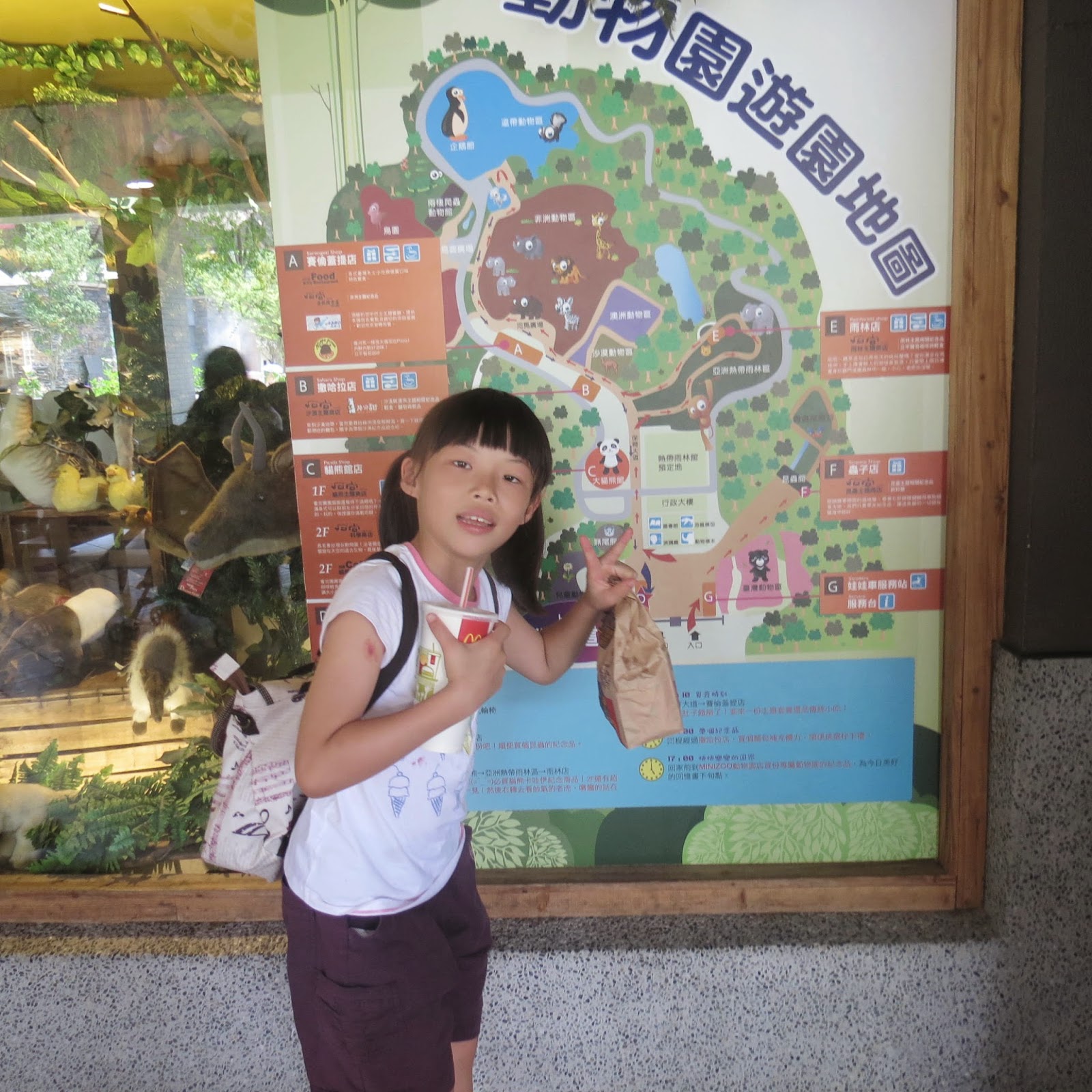 跟著閱讀去旅行 帶著閱讀認證前全校前26名學生,在環保局經費補助下並結合家長會活動與家長會會長、副會長、委員及顧問一群人進行聯誼活動,目的地-木柵動物園-看圓仔。 第一站:垂坤﹝交流道旗艦店(全年無休):國道三號苑裡交流道下100公尺,037-867840﹞進行《傳統零嘴超唰嘴》shopping。 天氣相當好,木柵動物園花木扶疏、綠蔭處處,放眼望去盡是蒼翠的濃密林蔭,真是環境教育的好場域。 第二站:木柵動物園-看圓仔。首先到麥當勞吃午餐,謝謝領隊已幫我們購買。11點30分到熊貓館參觀,百聞不如一見,看到圓仔在樹頂上玩耍,只是沒有逗趣畫面。 第三站:企鵝館。沿途參觀各館或各場域的動物,印象最深刻是長頸鹿吃樹葉,雖然吃得津津有味,但是感覺相當辛苦,因為食物藏在籃子裡。天氣太熱,大家最喜歡到企鵝館吹冷氣,看大家都坐在裡面。我們也看到國王企鵝氣宇軒昂、昂首闊步,個個有精神。 第四站:坐貓纜。天氣突然下雨又打雷,貓纜停止作業,大家好失望,只好搭遊園車回大門口。 第五站:土城小黑松大兩口。牛軋糖較富盛名。 第六站:頭份休息站-晚餐